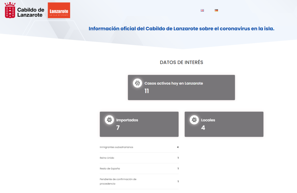 El Cabildo lanza una web para informar sobre la evolución del coronavirus en Lanzarote