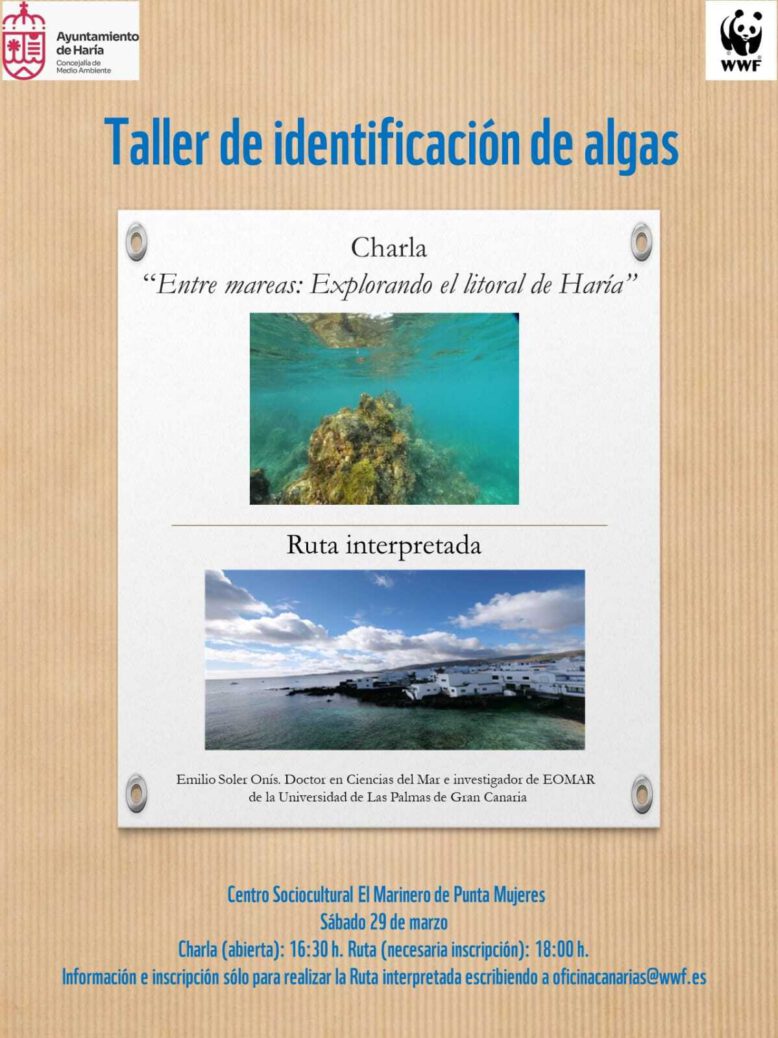 El Ayuntamiento de Haría y Fondo Mundial para la Naturaleza (WWF) invitan a la población a participar en un Taller de Identificación de Algas, que tendrá lugar el próximo sábado, 29 de marzo, en Punta Mujeres.