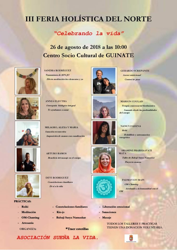 La Asociacion Sueña la Vida, con la colaboración del Ayuntamiento de Haría, presenta la III Feria Holística del Norte, «Celebrando la vida», que tendrá lugar el proximo 26 de agosto a las 10:00 horas en el Centro Socio Cultural de Guinate.